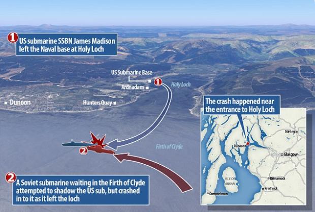 Documentele oficiale ale CIA au scos la iveală faptul că un submarin american a intrat în coliziune cu unul sovietic, în timpul manevrelor din apele coastei Holy Loch din Argyll, Scoția.