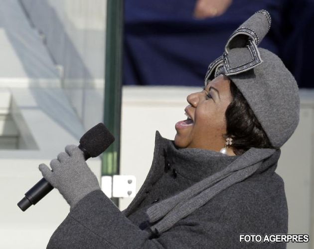 Aretha Franklin cântă în timpul ceremoniei de investire de la Capitoliu.