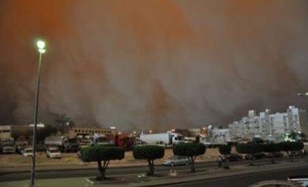 Oraşe întregi au dispărut în norul gigantic de nisip. Aeroporturile, şcolile şi alte instituţii publice au fost închise.