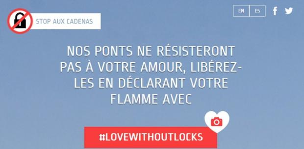 Mai multe autocolante au fost lipite pe podurile pariziene, pentru a sugera îndrăgostiţilor să facă selfie-uri şi să le publice pe un site special (lovewithoutlocks.paris.fr) sau pe Twitter, cu hashtagul #lovewithoutlocks ("iubire fără lacăte").