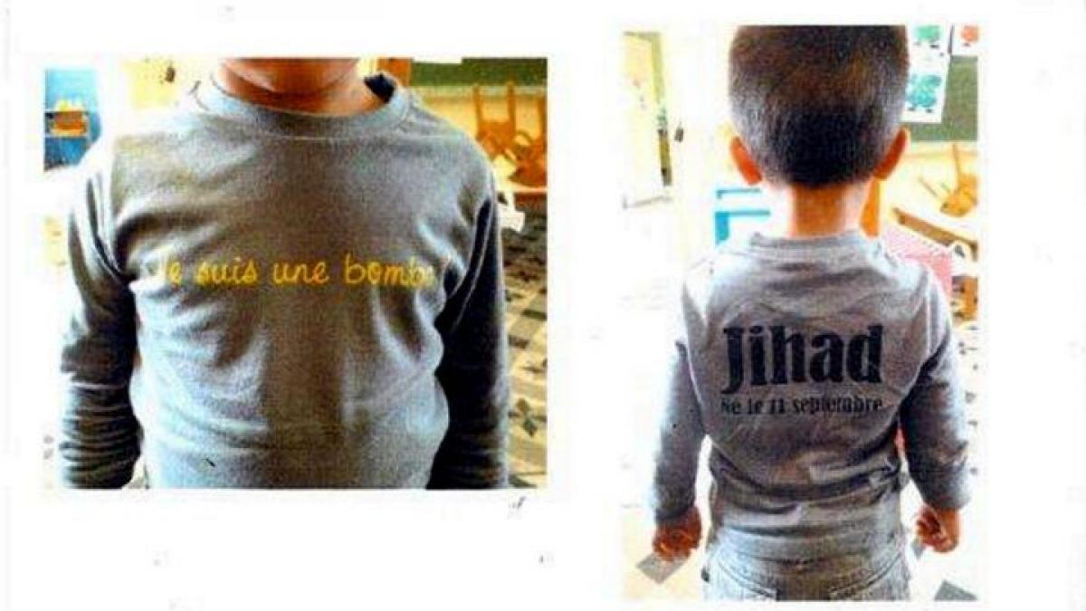 Bouchra Bagour, de 35 de ani, a fost adusă în faţa unei instanţe din Avignon pentru că şi-a trimis la grădiniţă fiul de 3 ani cu acel tricou "fără să îi pese de consecinţe". Femeia este acuzată de "glorificarea crimei".