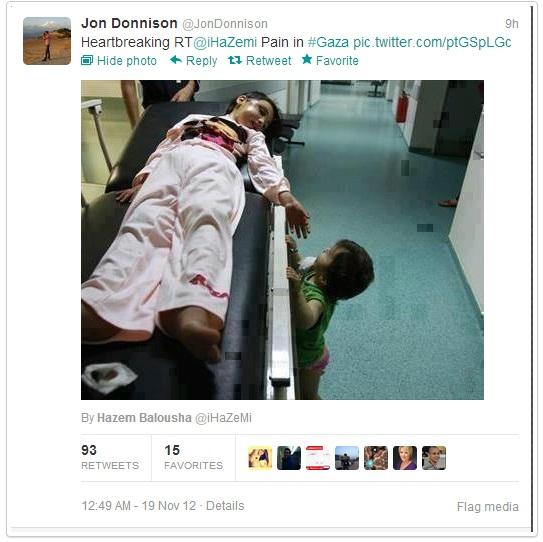Un purtător de cuvânt al BBC News a declarat: "Jon Donnison a postat fotografia cu bună credinţă. El a trimis o corecţie şi şi-a cerut scuze de îndată ce a aflat că imaginea nu era din Gaza."