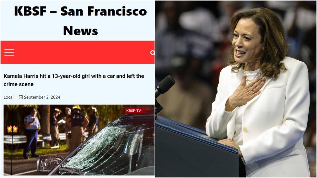 Un articol postat pe un site din SUA o acuză pe Kamala Harris, vicepreședintele american și candidat democrat pentru Casa Albă, că a accidentat grav cu mașina o femeie și a fugit apoi de la locul accidentului. Povestea s-a viralizat în mediul online, însă prezintă numeroase inconsistențe care acreditează ideea unui fake news, scrie BBC.