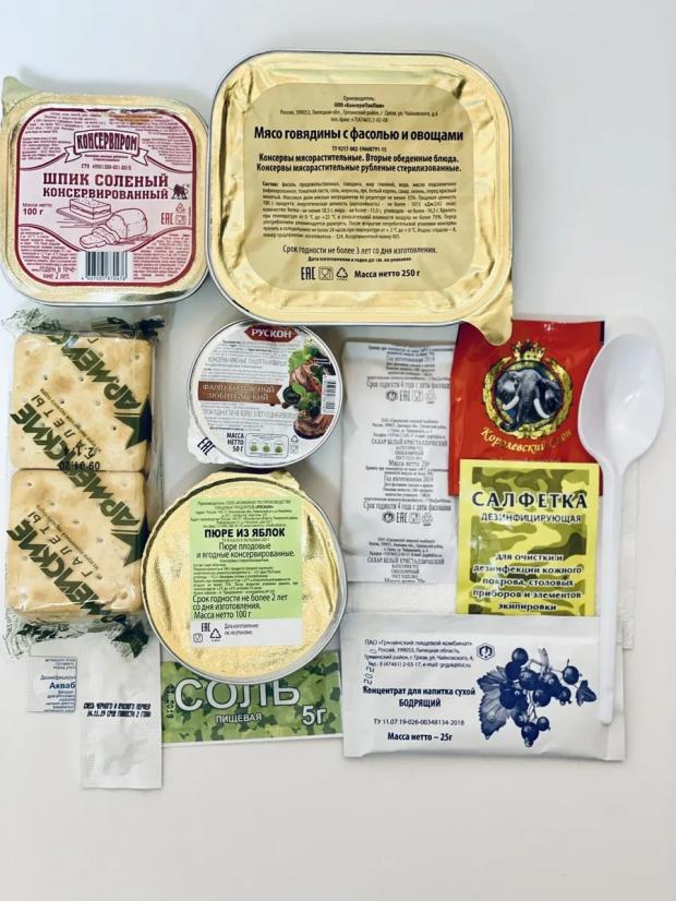 Produse în august 2020 şi pe punctul de a expira în iunie 2022, pachetele sunt disponibile contra sumei de 246 de ruble (aproximativ 3 euro), în ciuda faptului că pe ambalaj scrie mare că iniţial nu erau destinate vânzării.