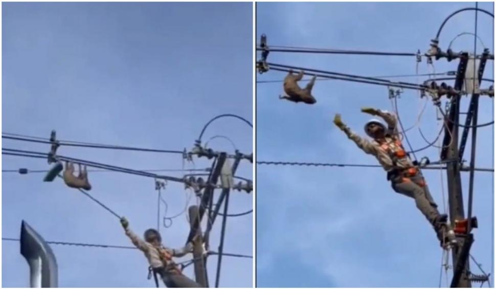 LIFE SAVER: Power electric company worker in Tarazá, Colombia rescues a sloth that was "hanging out" on the power lines yesterday. The sloth is safe & sound.❤️??? pic.twitter.com/eyjrO6eJIe