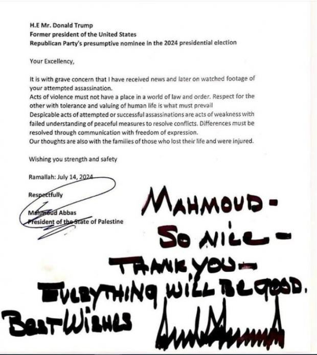 Donald Trump a distribuit miercuri pe rețeaua sa socială, Truth Social, o scrisoare pe care a primit-o de la liderul palestinian Mahmoud Abbas la scurt timp după tentativa de asasinat. El i-a mulțumit lui Abbas, iar în postare a scris că „de-abia așteaptă să aducă pacea în Orientul Mijlociu”, transmite CNN.