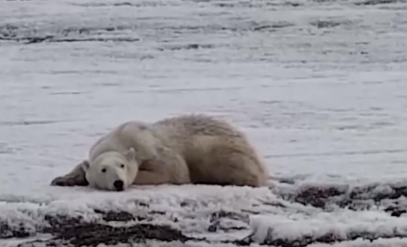 Locuitorii unui sat din Rusia au văzut un urs polar complet epuizat, plimbându-se pe străzi în căutare de mâncare.