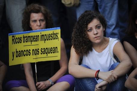 În mulţime, printre steagurile roşii şi albe ale sindicatelor, se vedeau pancarte pe care scria "NU" alături de un foarfece, simbolul tăierilor bugetare care au afectat o mare parte a populaţiei, în timp ce şomajul nu încetează să crească, fiind de 24,63 la sută din populaţia activă.