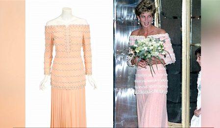 În 1993, Prinţesa Diana a strălucit la deschiderea Teatrului Savoy din Londra, îmbrăcată într-o rochie roz pal, fără bretele, decorată cu mărgele şi perle false. Păstrată într-o formă impecabilă, rochia a fost scoasă la licitaţie şi este estimată la aproximativ 80.000 de dolari.
