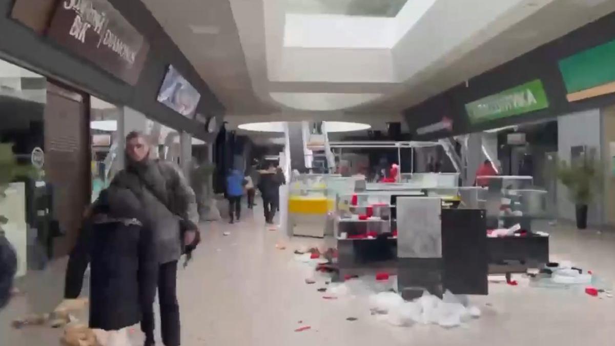 Un clip video postat astăzi pe Twitter arată dezastrul lăsat în urmă de cei care au jefuit magazinele din interiorul mall-ului.