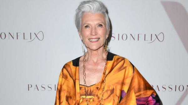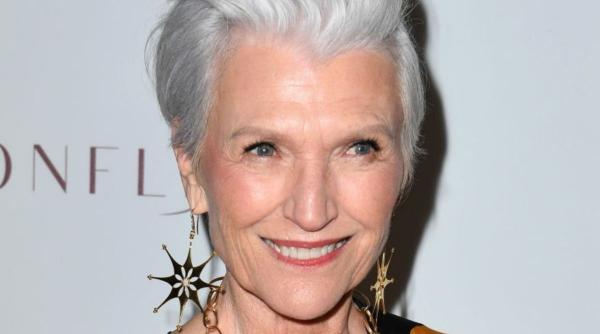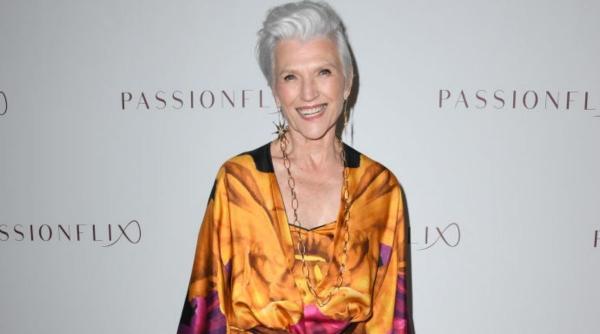 Maye Musk a purtat un kimono din mătase cu imprimeuri florare, o creaţie a designerului român Lucia Maria Hohan.