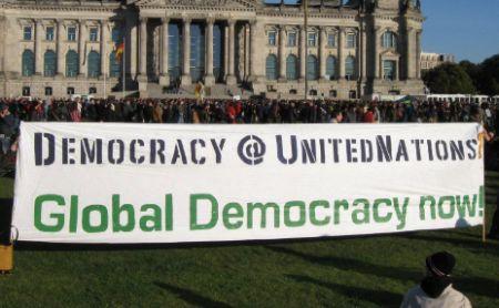Petiţia include, de asemenea, şi un îndemn către toţi locuitorii globului de a „participa activ la constituirea unei democraţii globale”. Iar democraţia globală trebuie să fie realizată prin intermediul „unui proces deschis tuturor oamenilor”.