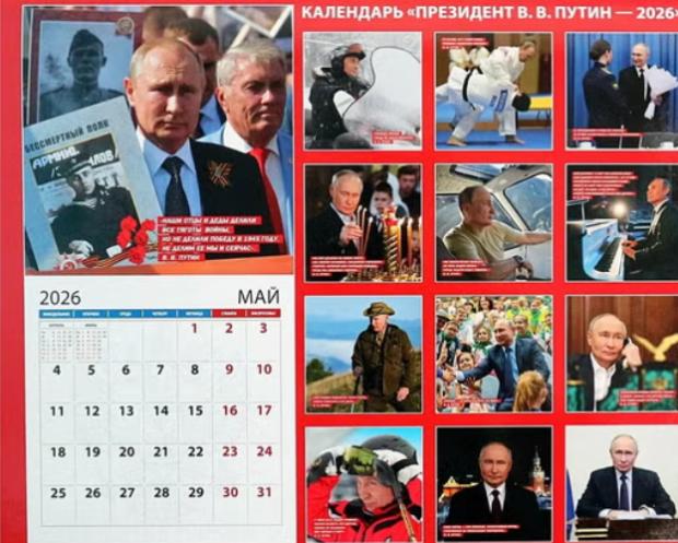 Aparatul de propagandă de la Kremlin a lansat un calendar pentru anul 2026 care îl glorifică pe Vladimir Putin. Cele 12 pagini ale calendarului conțin imagini mai mult decât măgulitoare cu liderul de 73 de ani al Rusiei, surprins în diverse ipostaze ori activități menite să-i scoată în evidență personalitatea, inclusiv doborând un adversar la judo, mergând prin munți ori cântând la pian.