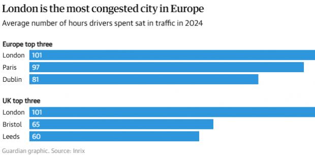 Inrix a estimat costul pentru Londra la aproximativ 3,85 miliarde de lire sterline, echivalentul a 942 de lire sterline pentru fiecare dintre cei 4 milioane de șoferi ai orașului.