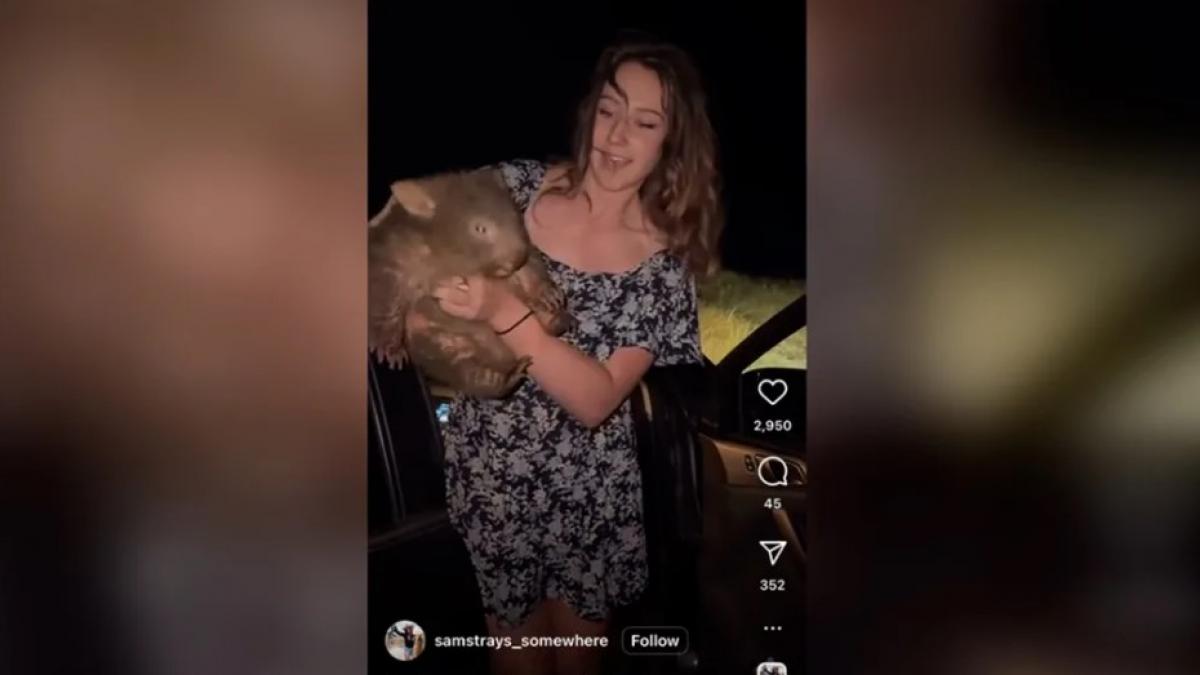 Un videoclip distribuit masiv pe rețelele sociale o arată pe Sam Jones, influenceriță cu 92.000 de urmăritori pe Instagram, alergând cu puiul de vombat spre o mașină, în timp ce mama puiului, îi urmărește disperată, într-o suferință vizibilă.