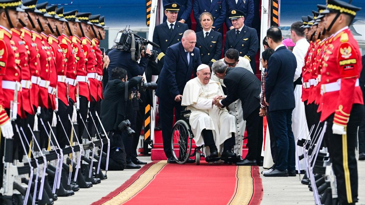 În vârstă de 87 de ani, liderul spiritual al Bisericii Catolice a sosit la Jakarta, la mai bine de 13 ore după ce a decolat de la Roma, cu un zbor special operat de compania italiană ITA Airways.