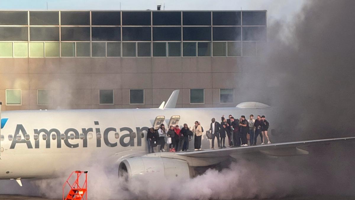 BREAKING: An American Airlines plane carrying 178 people appeared to catch fire on the tarmac after making an emergency landing at Denver International Airport Thursday evening, forcing passengers to evacuate by climbing out onto the wing of the plane. https://t.co/gWlirSyILE pic.twitter.com/AOSU1iB24H