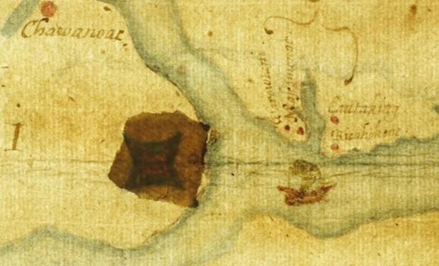 Fortul aparent era situat spre capătul vestic al estuarului Albemarle Sound, la aproximativ 100 de kilometri de ultima locație cunoscută a coloniștilor Roanoke.