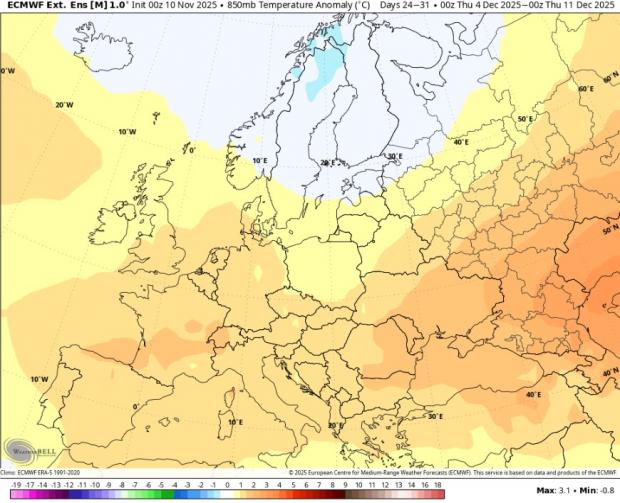 În Europa, efectele sunt mai puțin clare, însă se estimează că regiunile nordice și nord-centrale ar putea experimenta răciri ușoare și condiții pentru ninsori. Există, de asemenea, posibilitatea ca Marea Britanie să fie afectată dacă sistemele de presiune scăzută se vor poziționa corespunzător.