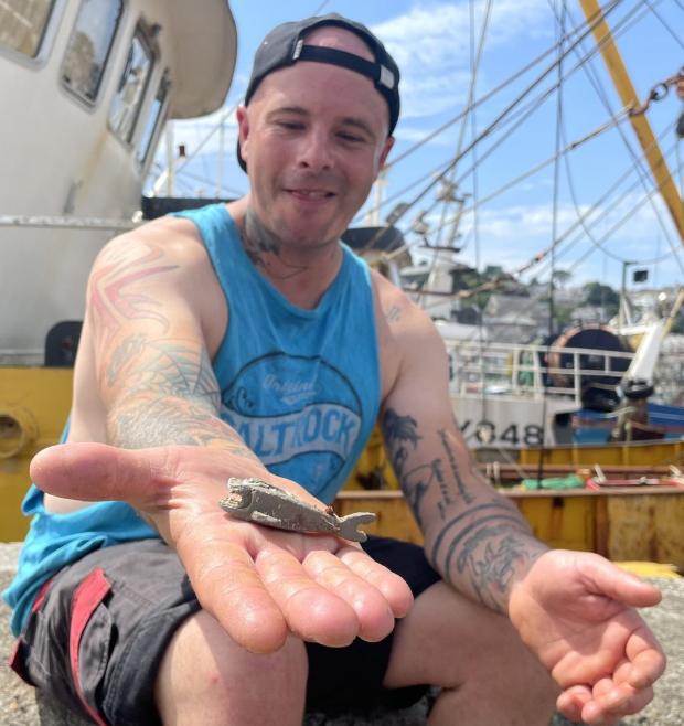 Richard West, un pescar în vârstă de 35 de ani care locuiește în Plymouth, a găsit marți jucăria de plastic pe vârful plasei sale de pescuit, la 32 km sud de Penzance.