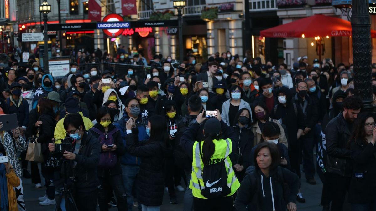 Foto: Imagine din Piccadilly Circus, Londra, în timpul unui protest, 1 noiembrie 2021