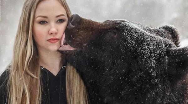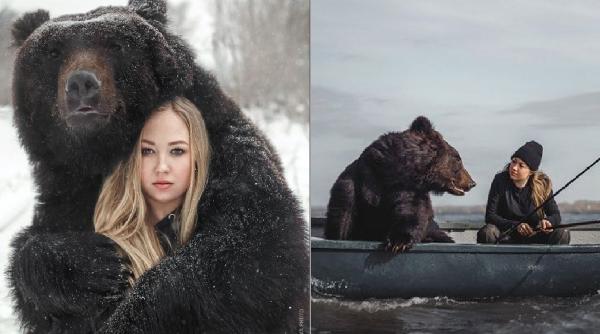 Rusoaica Veronika Dichka a devenit populară pe rețelele de socializare pentru ședințele foto pe care le face alături de animalele sale de companie printre care se numără şi un urs, Archie pe care tânăra l-a adoptat încă de pe vremea când era pui.