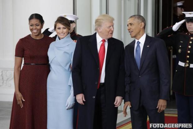 Melania Trump a adus aminte de Jaqueline Kennedy în ziua învestirii soțului său, purtând o ținută bleu ciel pentru slujba de la Catedrala Episcopală Saint John. Aceeași ținută o avea și când a ajuns, alături de soțul său, la Casa Albă, acolo unde au fost primiți de Barack și Michelle Obama.