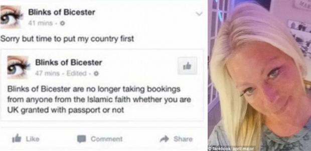 April Major, în vârstă de 43 de ani, a scris pe Facebook, după atentatele teroriste de la Paris, că nu mai acceptă clienţi adepţi ai Islamului, scrie dailymail.co.uk.