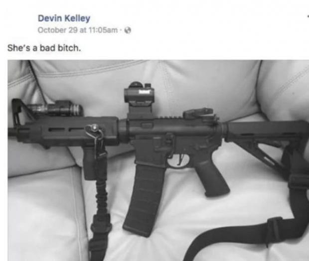 Pe 29 octombrie, adică cu o săptămană înainte de atac , Kelley a pus pe Facebook o poză cu o armă semi automată de tip AR-15, alături de mesajul: „she’s a bad b****”.