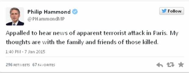 "Circumstanţele sunt încă neclare, nu ştim exact cine se află în spatele acestui atac. Cu siguranţă sunt mai multe persoane implicate în acest atentat, există un element de coordonare. Trebuie mai întâi să ştim dacă autorii au primit ordine din exterior", a spus Hammond când a aflat de evenimentele de la Paris.