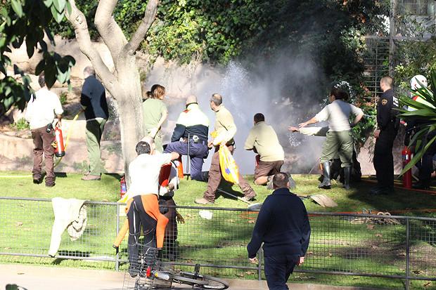 Felinele s-au năpustit asupra lui şi l-au atacat imediat. Îngrijitorii au intervenit imediat şi au încercat să îndepărteze animalele cu tunuri de apă rece.