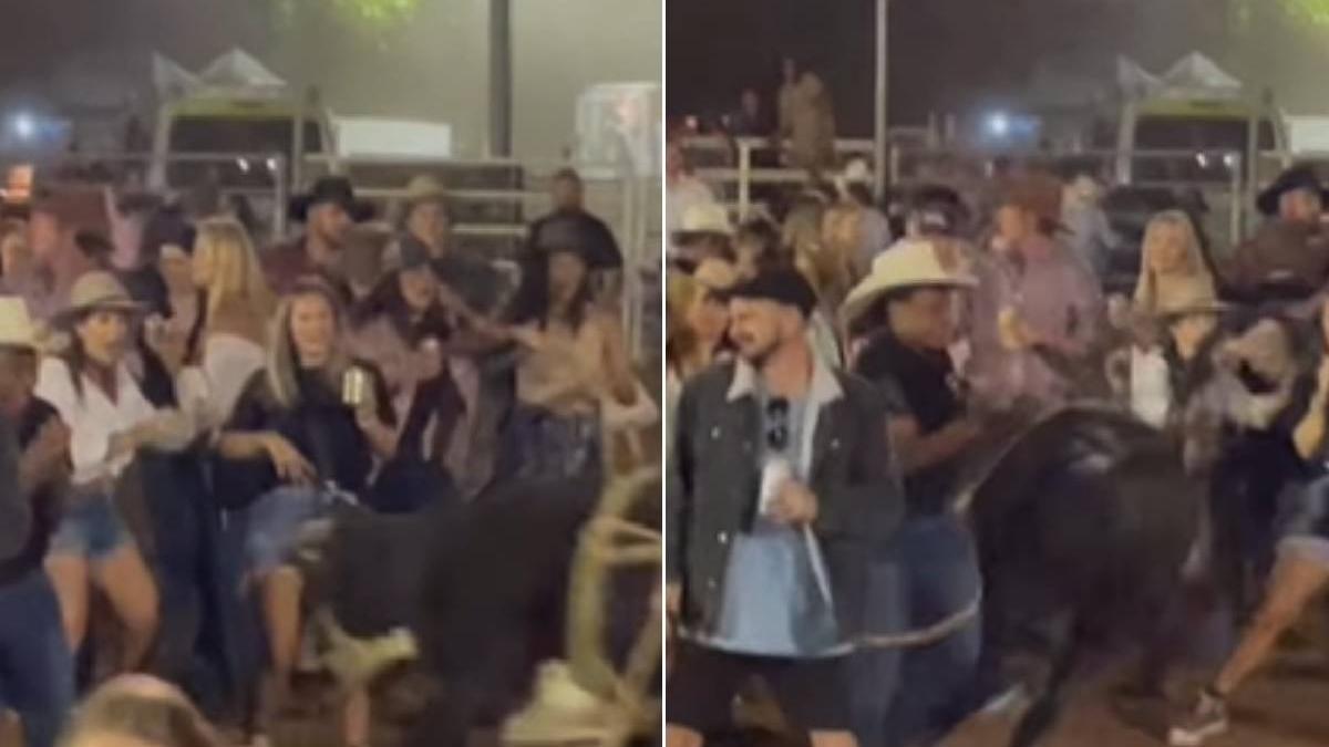 Înainte ca animalul să-i atace, zeci de oameni, printre care și copii, dansau în arena de rodeo .