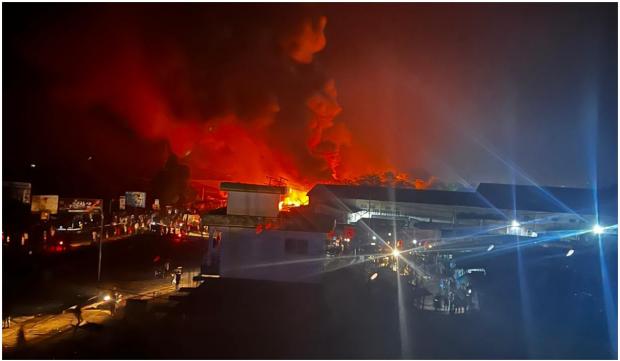 Imaginile au arătat mai multe victime arse grav zăcând pe străzi, în timp ce focul a cuprins și magazinele și casele din apropiere.