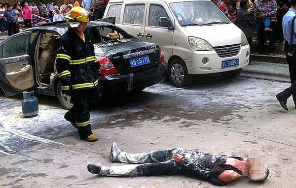 În vâlvătaia care s-a pornit femeia gravidă a fost grav rănită, norocul ei au fost trecătorii care au scos-o rapid din maşină. Agresorul a fost şi el prins de flăcări şi ars pe faţă şi membre.