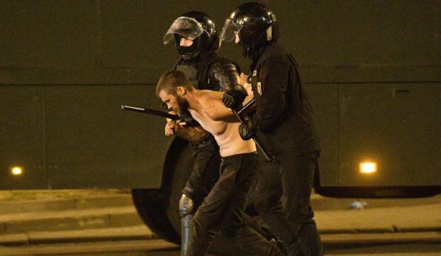 Tânăr arestat de forțele de ordine în timpul unui protest din Minsk împotriva președintelui Lukașenko