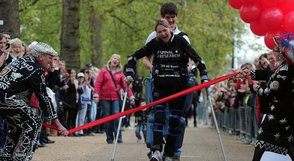 Dispozitivul care este fixat pe picioarele ei şi care a ajutat-o să termine maratonul a fost conceput de israelianul Amit Goffer şi costă 53.000 de euro. Cu ajutorul acestui aparat, persoanele paralizate pot să se ridice, să meargă şi chiar să urce scările cu ajutorul unor senzori de mişcare şi a unui sistem computerizat.