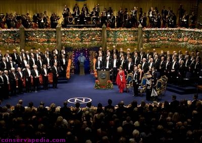 8 octombrie: CHIMIE - Roger Tsien, Martin Chafle şi Osamu Schiomura, pentru cercetările asupra proteinei fluorescenţă verde (GFP), observată pe meduze şi considerată esenţială în dezvoltarea biochimiei. Cu ajutorul acesteia, cercetătorii au dezvoltat tehnici de urmărire a unor procese invizibile în trecut, precum dezvoltarea celulelor nervoase în creier şi răspândirea celulelor canceroase.