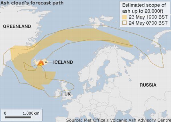 Norul de cenuşă vulcanică a afectat cursele aeriene din Scoţia, cauzând anulări multiple ale curselor aeriene şi blocarea pe aeroport a mii de pasageri. Inclusiv vizita preşedintelui american în Irlanda a fost afectată de nor, Barack Obama fiind obligat să părăsească ţara mai repede decât era planificat, pentru a îşi putea continua turneul european.