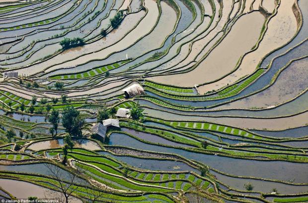 Obligați de împrejurări să cultive orezul în această zonă, oamenii din apropierea munților Yuanyang au creat terase pentru a favoriza dezvoltarea culturilor.