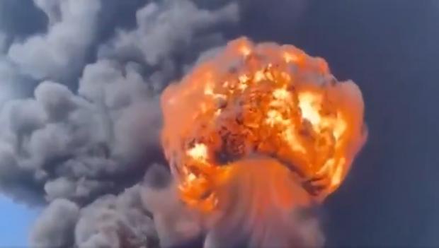 Videoclipurile care circulă pe rețelele de socializare chineze arată norul de flăcări și fum generat în urma exploziei în timp ce acoperă clădirile dintr-un parc industrial.