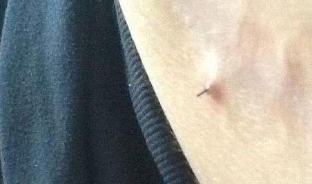 Tânăra de 26 de ani a realizat că acul respectiv a fost probabil uitat în interiorul abdomentului său în urma unei operaţii pe care a suferit-o în anul 2009.