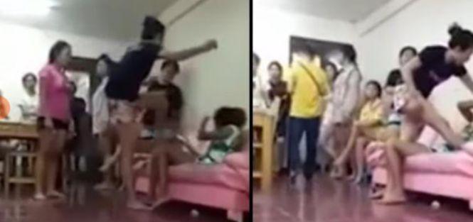 O femeie din Thailanda a bătut-o cu sălbătăcie pe amanta soțului ei. Imaginile surprinse de o cameră de supraveghere arată cum soția înșelată a lovit-o pe victimă cu piciorul în cap, de nouă ori.