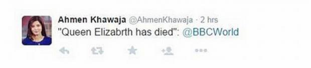 Jurnalista a difuzat pe propriul cont de Twitter mesajul: "Regina Elizabeth a fost transportată de urgenţă la Spitalul „Regele Edward al VII-lea” din Londra. În scurt timp va fi transmis un comunicat oficial". După scurt timp, jurnalista de la BBC News a transmis un alt mesaj: "Regina Elizabeth a decedat".