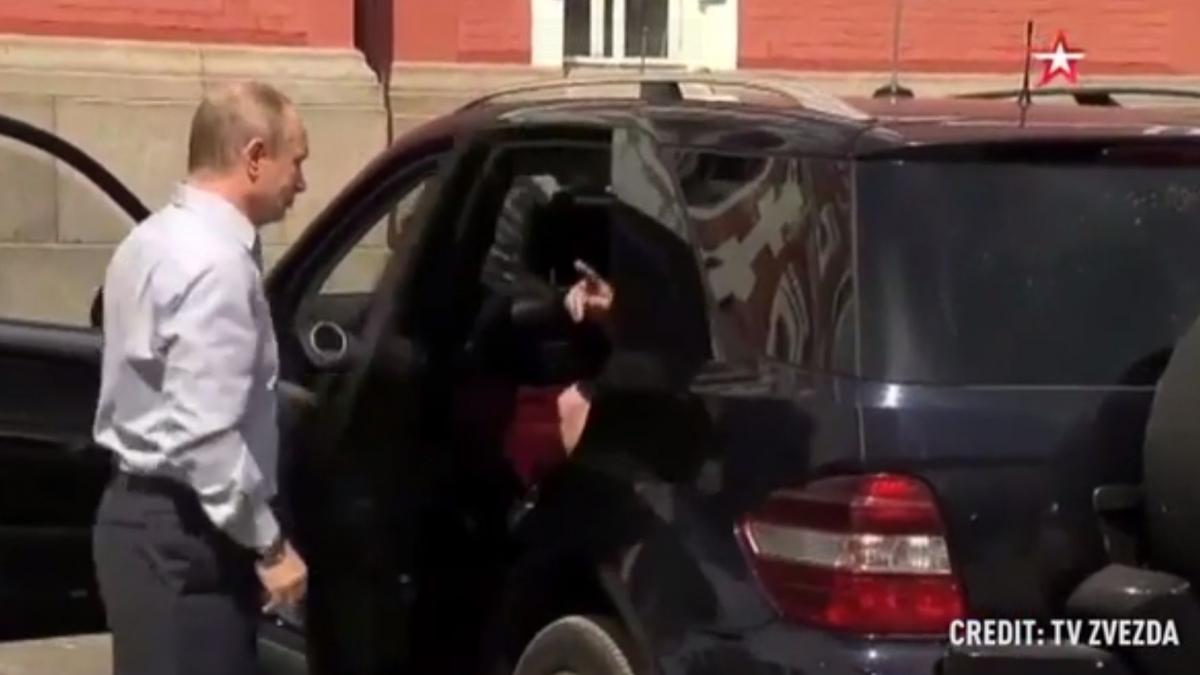 După ce a coborât dintr-o maşină de lux în apropierea unei mănăstiri din nordul Rusiei, liderul de la Kremlin a deschis portiera din spate, unde se afla această femeie. Din imagini se poate observa că purta o rochie roşie şi a fost cât pe ce ca Putin să-i dezvăluie identitatea.