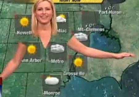 Toţi cei din studio s-au distrat copios dar, la final prezentatoarea a anunţat că şi-ar fi pus rochia în mod intenţionat, tocmai pentru a arăta tuturor de ce oamenii de la meteo nu poartă niciodată culoarea verde.
