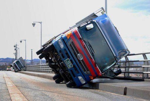 In Toyama rafalele de vânt au răsturnat mai multe camioane grele pe autostradă.
