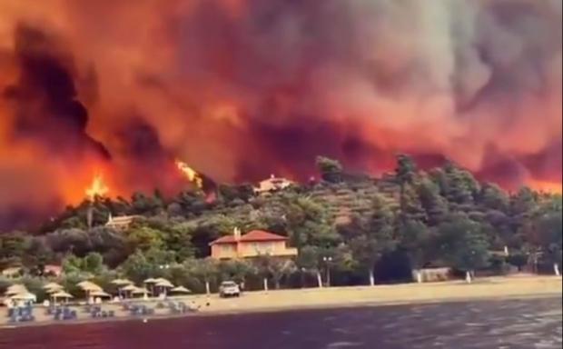 ▪️People on the Greek island of #Evia were evacuated by boats as wildfire spread rapidly, destroying 150 houses.