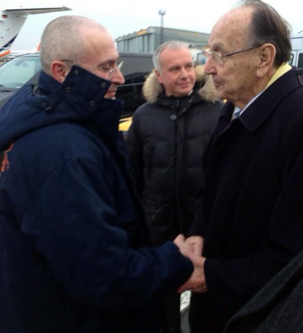Singurele imagini cu Mihail Hodorkovski dupăeliberare au fost surprise pe aeroportul din Berlin, unde patronul gigantului petrolier Iukos s-a întâlnit cu un fost ministru de externe german.