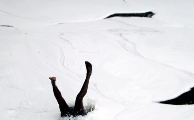 Pentru a se răcori locuitorii din această ţară sunt dispuşi să treacă peste riscul teribil de a se infecta şi intră în apele poluate ale râului Yamuna. Apele sunt atât de poluate încât suprafaţa râului pare că este acoperită cu zăpadă.