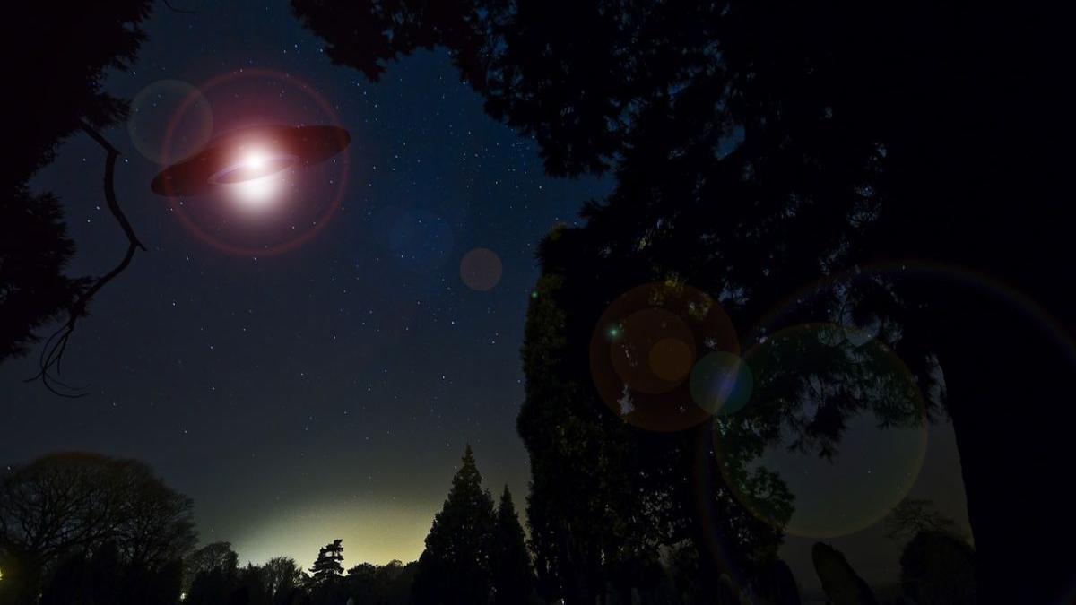 În imagini, apar OZN-uri de diverse forme care strălucesc şi se mişcă printre nori.